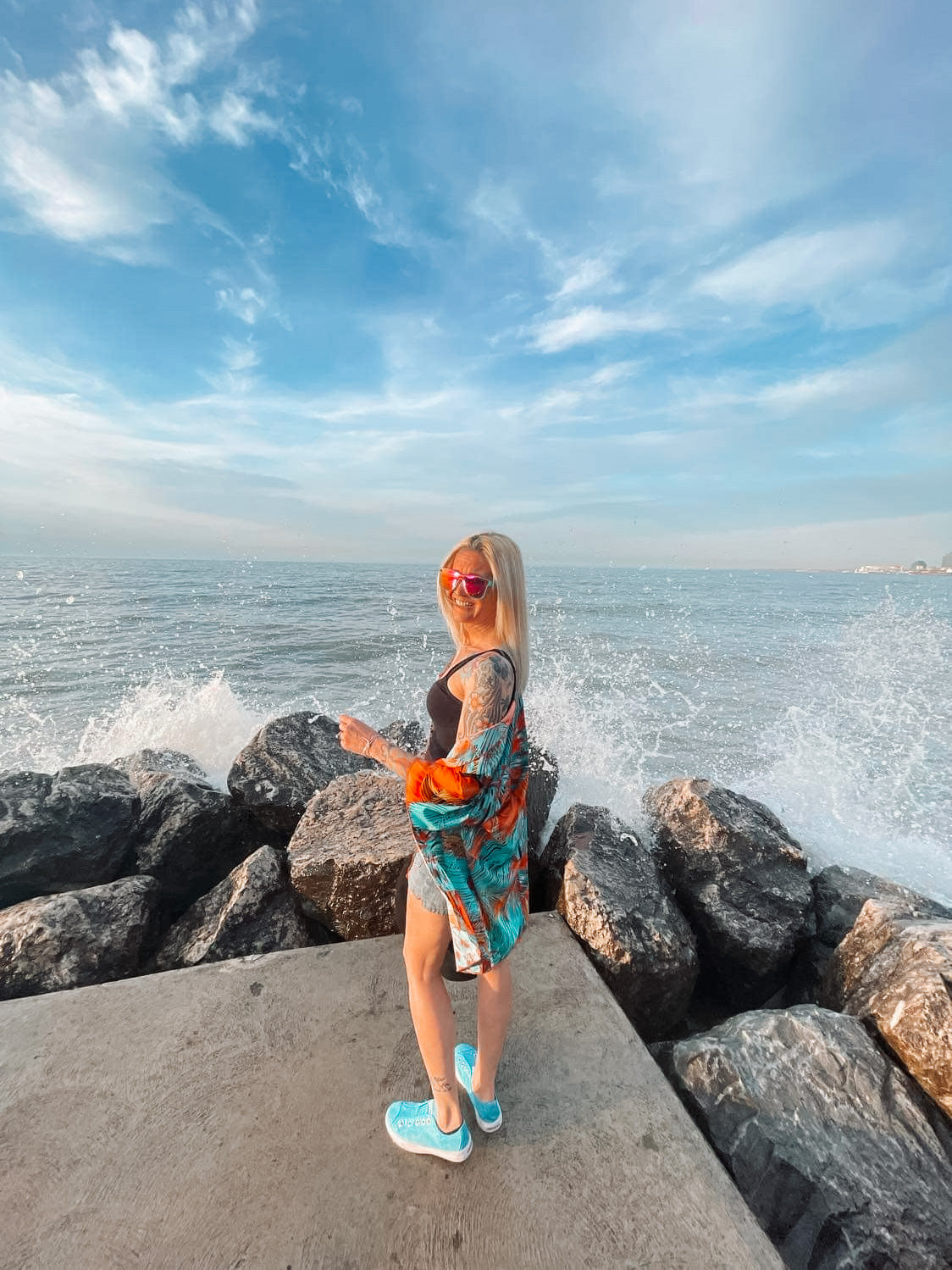 Rock the beach with this FW beach cover up featuring super vibrant good vibes! Keep your look fresh and summery, and keep your energy up with its bright, cheerful colors. Soak up the summer with this must-have cover up!